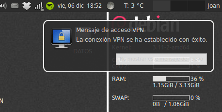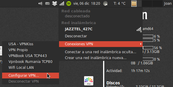 Si necesitamos conectarnos a nuestro servidor VPN en un ordenador con GNU Linux el proceso es fácil. Tan solo tenemos irnos a icono de nuestro gestor de redes que esta nuestro panel, y seleccionar las opciones que se pueden ver en la siguiente captura de pantalla: