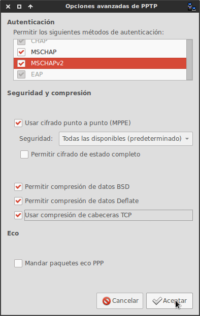 requiremppe128 : Esta linea define que el tráfico entre cliente y servidor irá cifrado con una capa de cifrado de 128 bits MPPE.