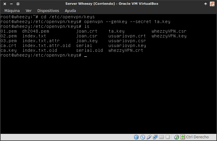 Al terminar el proceso dentro de la ubicación /etc/openvpn/easy-rsa/keys se habrán creado los siguientes archivos: